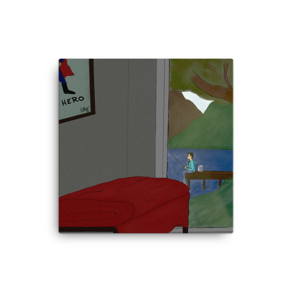 Consider sitting with a retired superhero with this square canvas.